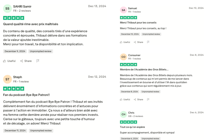Le + accompagné Académie Coaching — 12 mois Attention, il ne reste 9 places pour le coaching ! 1 497€ 997€ Facturation une fois • ≈ 83€/mois Pour exécuter avec moi, pas juste apprendre. ✔ Tout ce qu’il y a dans la version Classique ✔ 4 appels stratégiques 1:1 dans l’année (cadence trimestrielle) ✔ Plan d’action personnalisé & priorisation des étapes ✔ Priorité sur les Q&A et réponses ✔ Check de suivi à 90 jours ✔ Garantie “Premier résultat ou prolongation 6 mois” Valeur contenu Coaching Accès Académie (12 mois)2 300€ 4 appels 1:1 + plan perso800€ Priorité & suivi 90 jours— Valeur ≈ 3 100€ → 997€ Places limitées. Idéal si tu veux des résultats rapides et guidés.